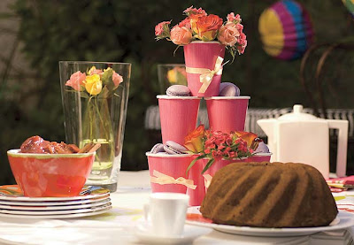 Copinhos descartáveis podem servir de base para o arranjo de mesa.