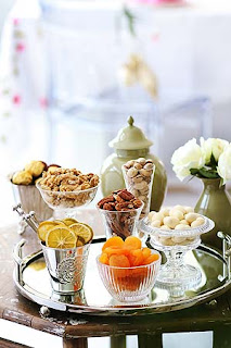 Misture copos e taças que você tem em casa para servir os aperitivos, que podem ser montados na véspera. Mesa da Stile d.o.c., R$ 2.600. Frutas secas e bombons estão arrumados em uma bandeja, da Entreposto, R$ 588, dentro de taças de cristal e de prata, da Entreposto, Le Lis Blanc Casa e Roberto Simões – preços entre R$ 22 e R$ 188. As taças misturam-se a peças de decoração, como o potiche de porcelana, da Stile d.o.c., R$ 235