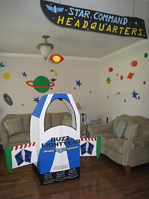 Muita criatividade - a sala foi enfeitadao com o tema, Comando Estelar sinal Sede e Buzz Lightyear